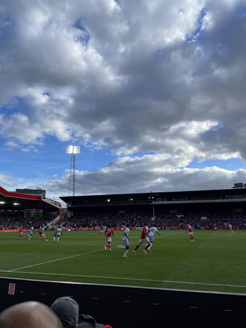 After another brilliant display from Forza Garibaldi to the tune of ‘Mull of Kintyre’, the game was underway. Just 11 minutes in, the visitors took the lead through Jean Philippe Mateta. Following a poor clearance, Palace picked up the ball in the middle of the park. They broke forward with Jefferson Lerma playing a lovely through ball to Eberechi Eze on the left hand side of the box. He was tightly marked by two Forest defenders so played the ball back to Mateta on the edge of the box. He ran on to the ball to fire past Matz Sels into the top left corner.